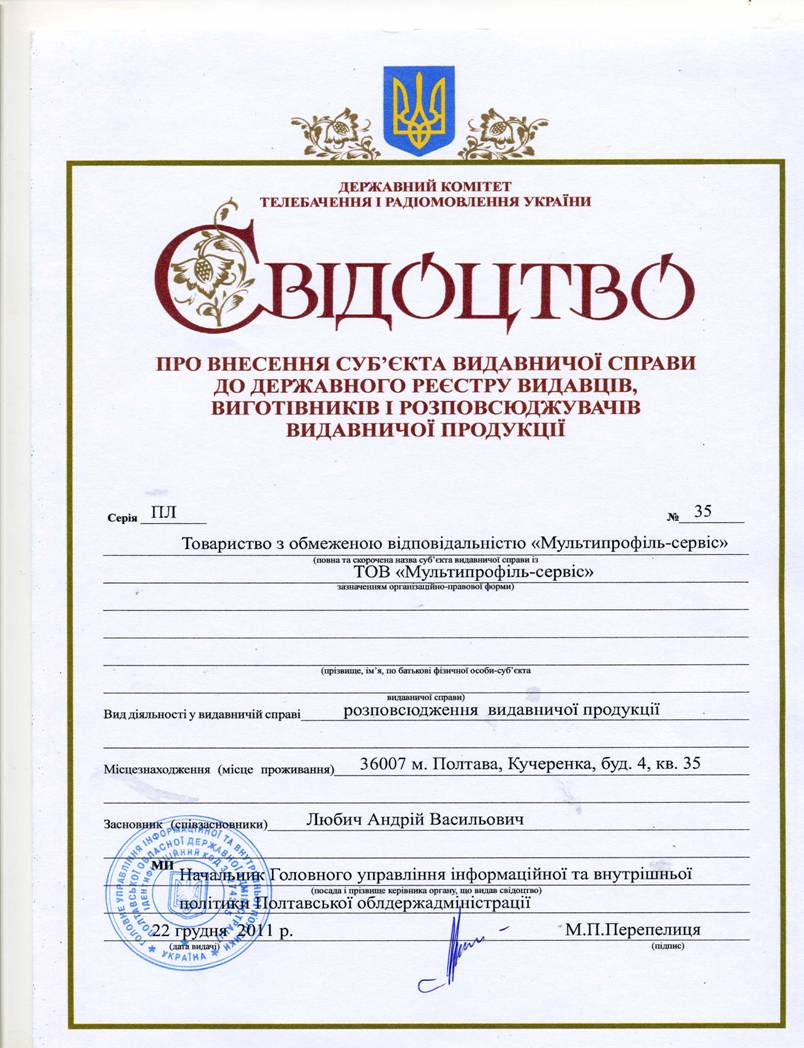 vul. Kucherenka 4, kv. 35, Poltava 36007, т (067) 401-93-74, fax: (0532) 67-73-38